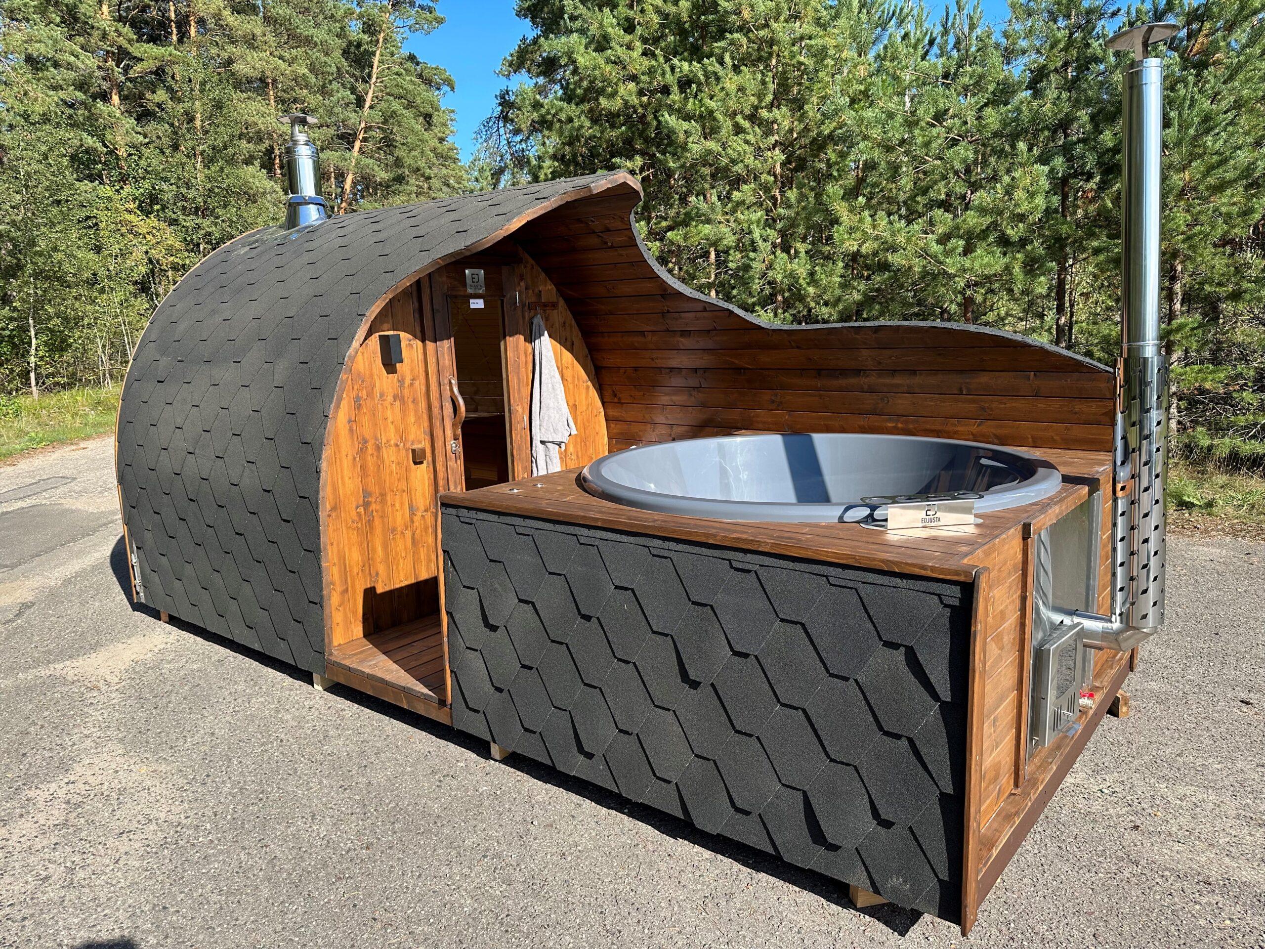 Das Dach aus Bitumenschindeln in Ihrer Wunschfarbe (schwarz, braun, grün oder rot) verleiht dem Saunafass ein edles Finish und schützt zuverlässig vor Witterungseinflüssen. Zudem ist die Außenseite imprägniert und in einer Farbe Ihrer Wahl erhältlich – für ein perfekt auf Ihre Vorlieben abgestimmtes Erscheinungsbild.