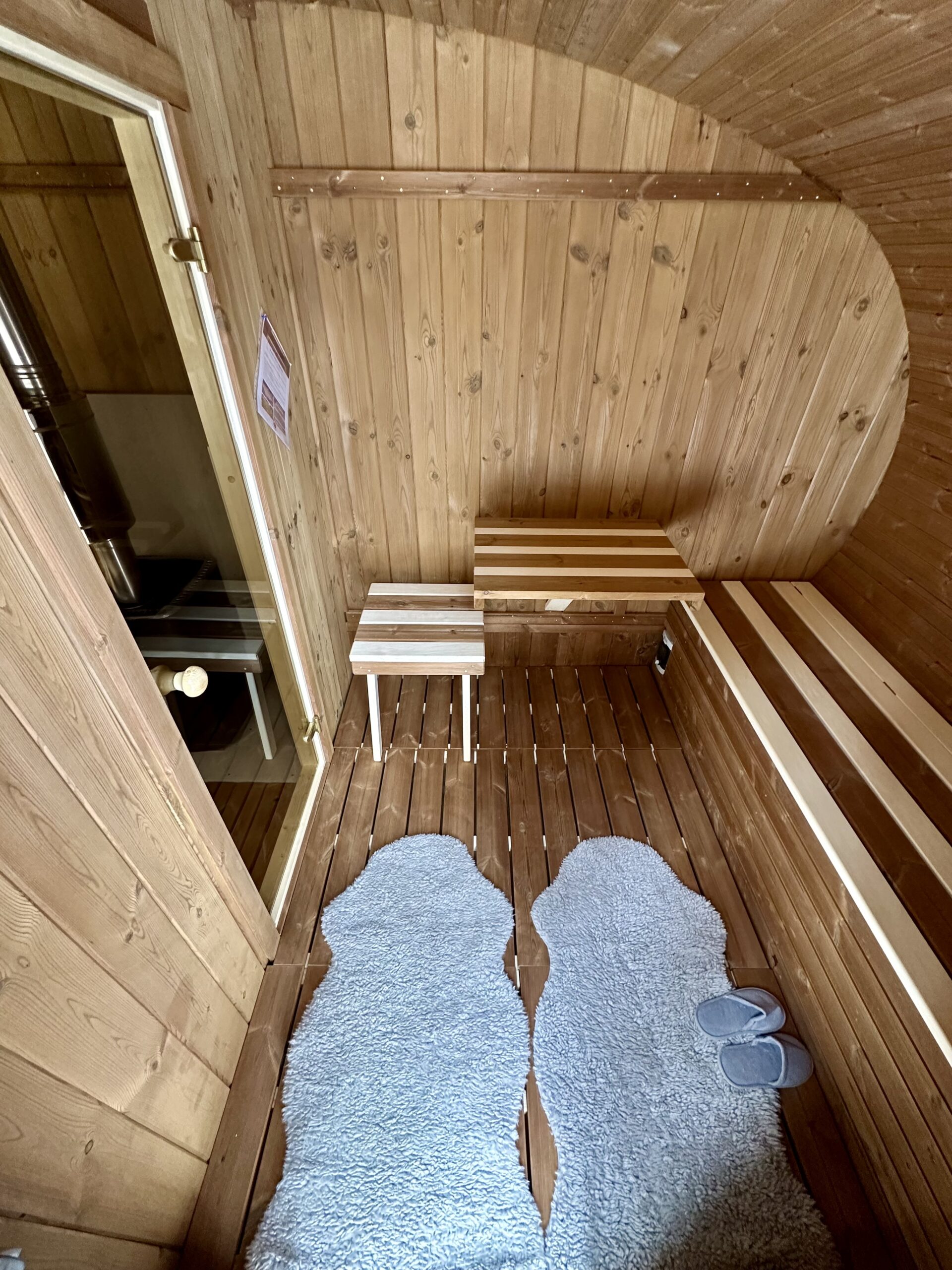 - Abschließbare Holztür mit kleinem Fenster – für Privatsphäre und natürliches Licht