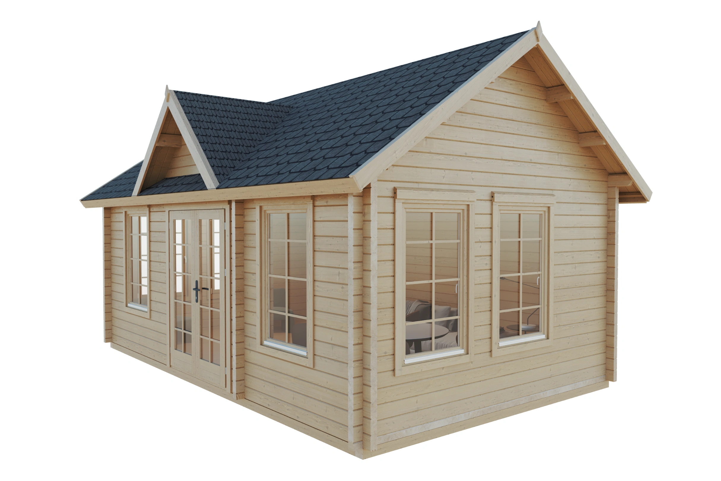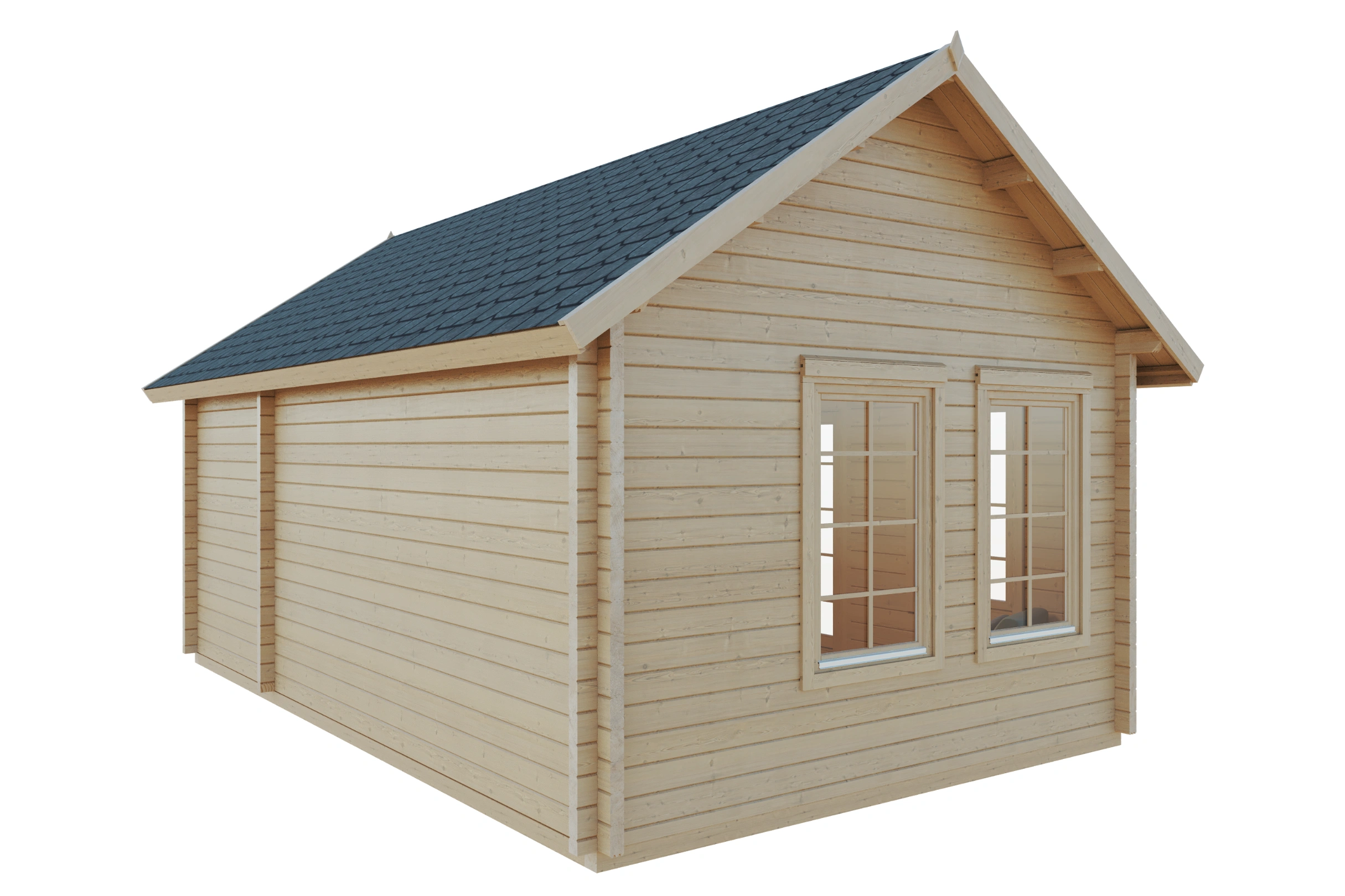 - Massive Blockwände: 70 mm starke Bohlen mit Doppelzahn-Nut-System für optimale Stabilität und Dämmung