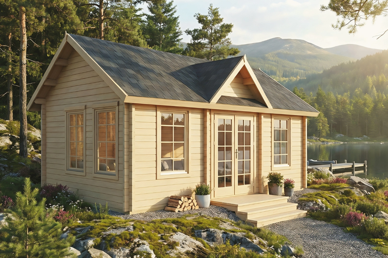 Das Ferienhaus Arrow wird als umfangreicher Premium-Bausatz geliefert, der alle wesentlichen Komponenten für eine schnelle und erfolgreiche Montage enthält: