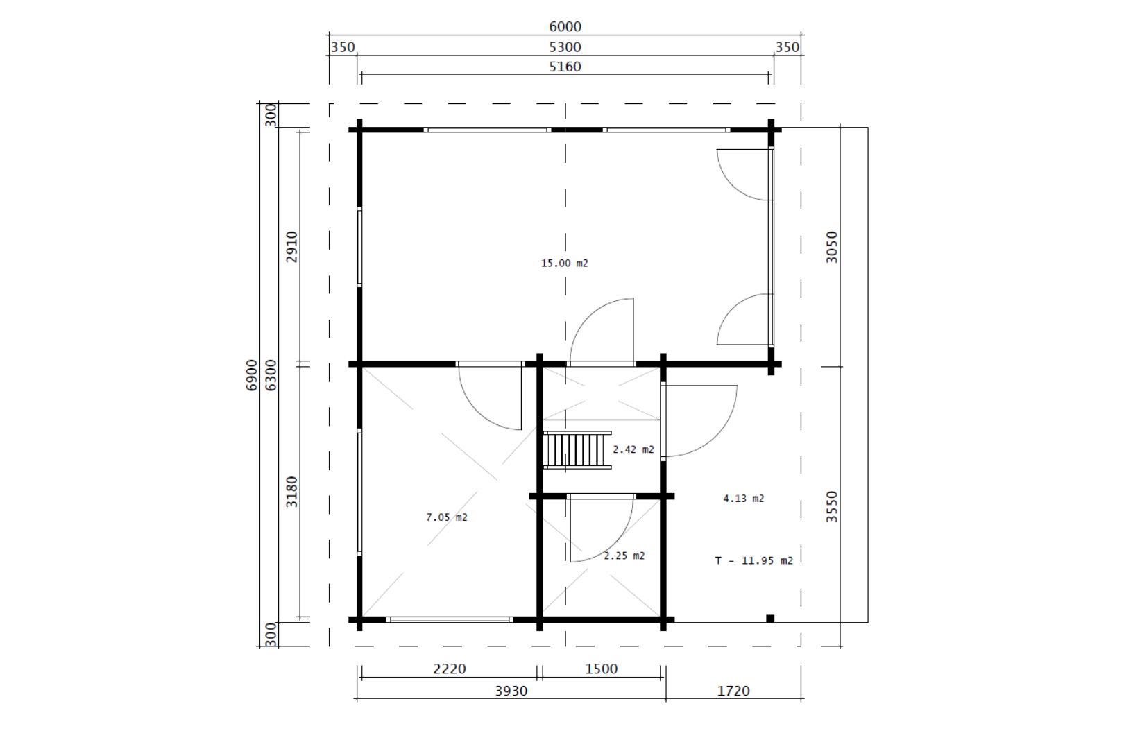 - Traufhöhen: 300 / 350 / 350 / 300 mm – durchdachte Dachkonstruktion