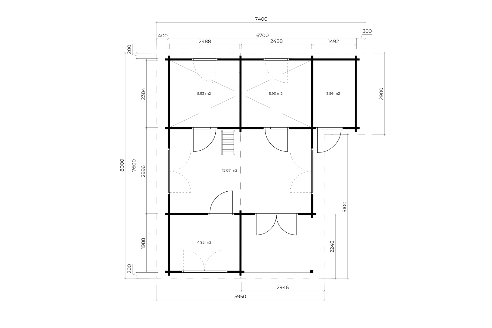 Mit einer Grundfläche von insgesamt 47,6 m² (aufgeteilt in 35,4 m² und 12,2 m²) bietet das Göteborg C ausreichend Raum für eine vielseitige Nutzung. Die fünf separaten Räume lassen sich individuell gestalten – ob als geräumiges Elternschlafzimmer, Kinderzimmer, Arbeitszimmer oder zweites Wohnzimmer.