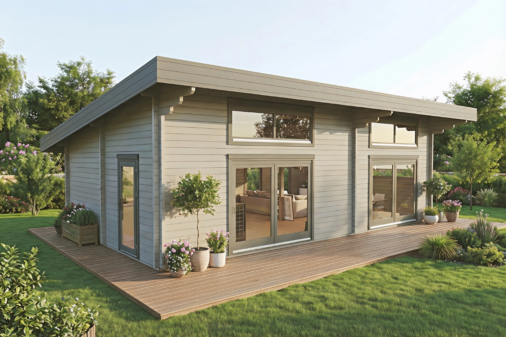 - Eine weitere Terrassentür mit 900 x 2080 mm aus gehärteter Doppelverglasung für zusätzliche Zugangsmöglichkeiten
