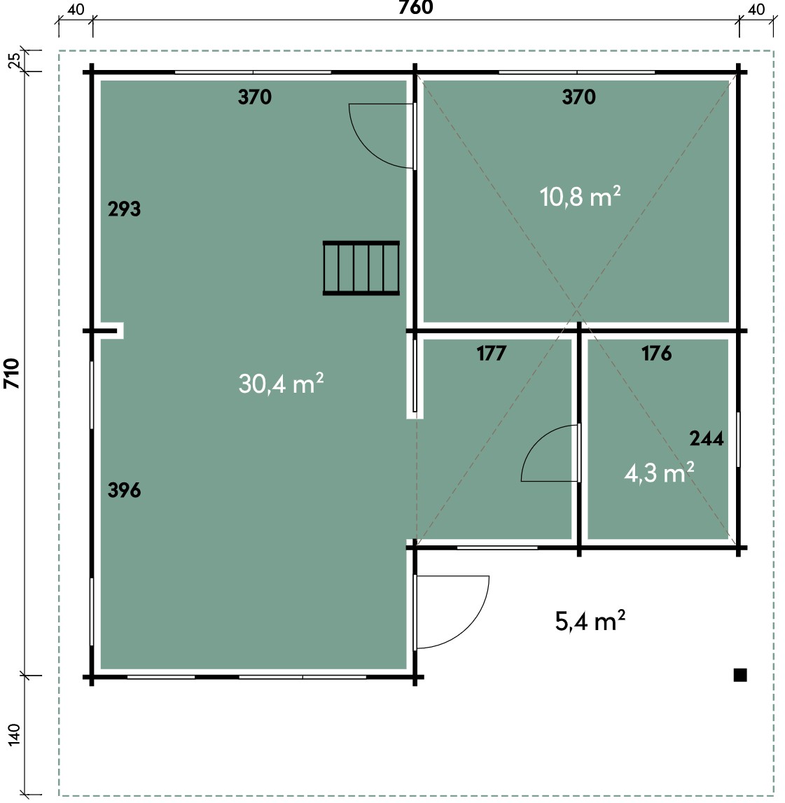 - Grundfläche: 54 m², Rauminhalt 170 m³