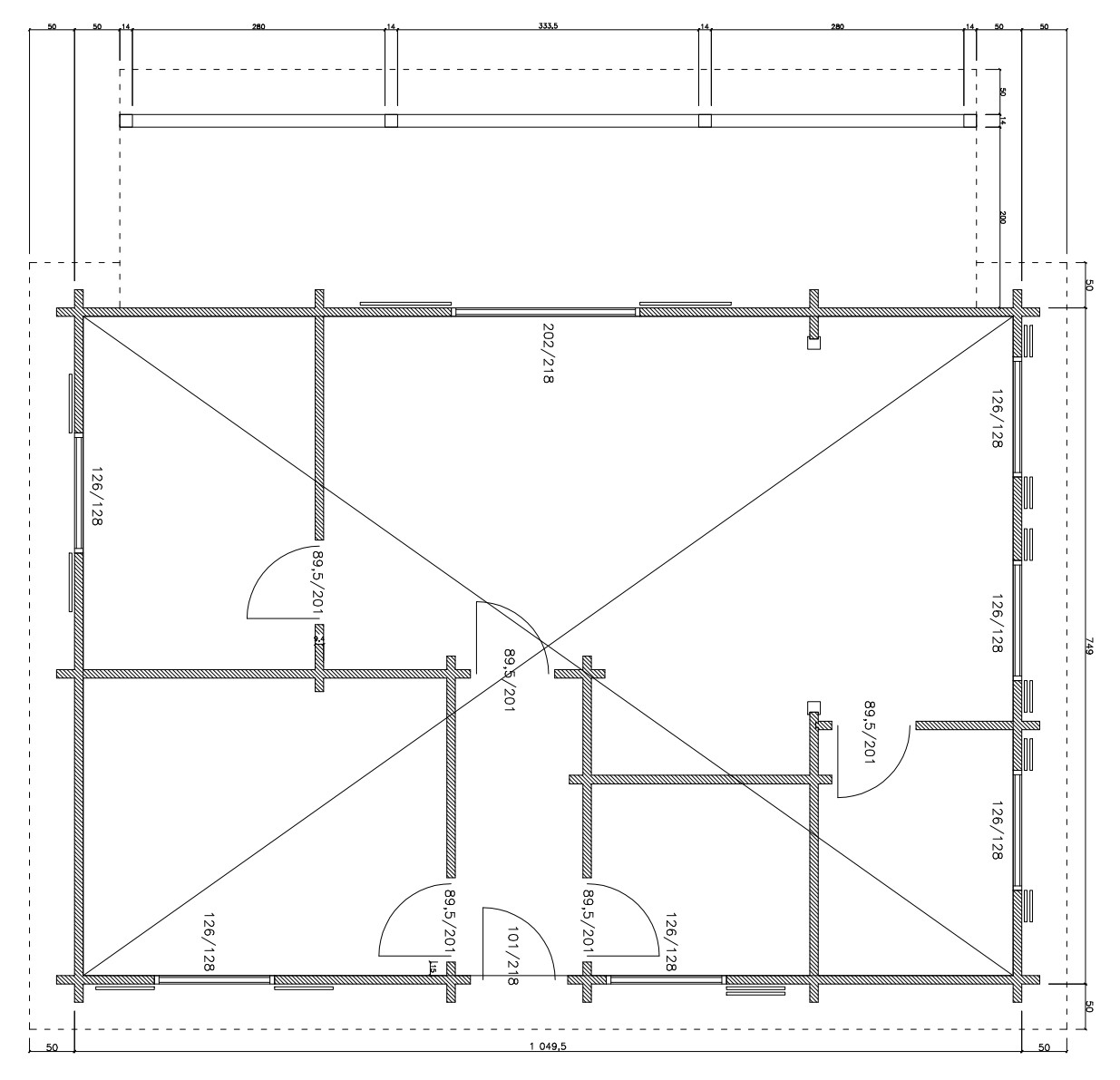 - Raumhöhen: Seitenwand 250 cm, First 465 cm