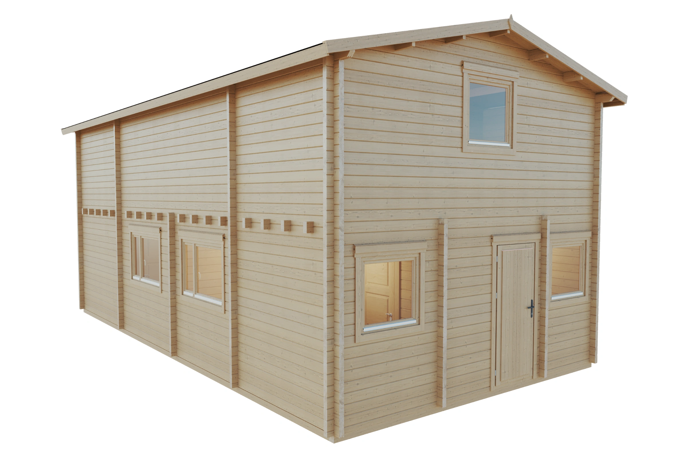 Die Småland wird mit einer beeindruckenden Wandstärke von 70 mm gefertigt und nutzt das bewährte Doppelzahn- und Nut-System. Diese doppelte Verzahnung erhöht die Stabilität der Wände enorm, verhindert ein seitliches Verschieben der Bohlen und macht die Konstruktion besonders widerstandsfähig gegen extreme Wettereinflüsse. Mit dieser Wandstärke ist das Haus für den ganzjährigen Betrieb in anspruchsvollsten Klimazonen bestens gerüstet.