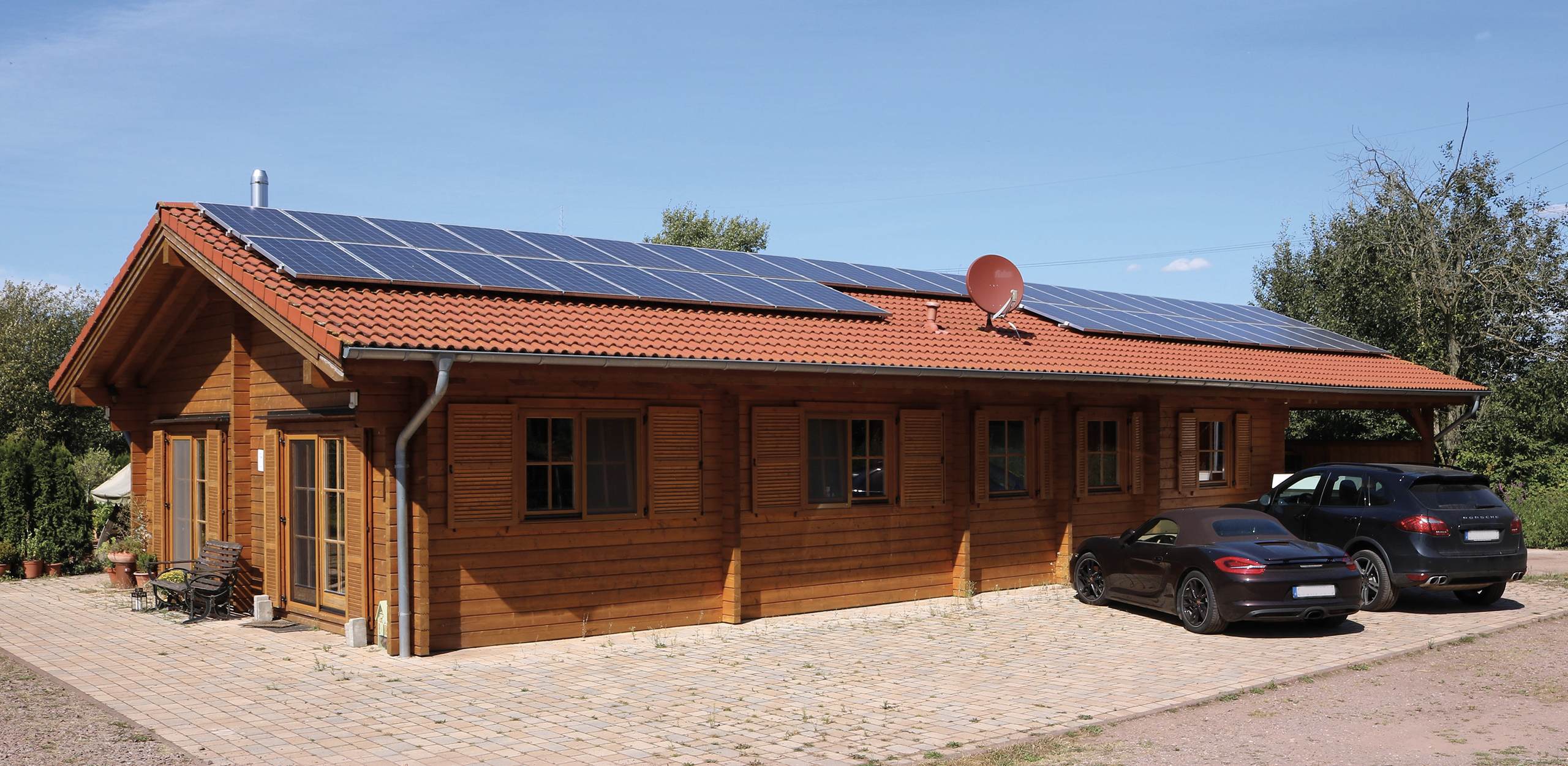 Dank der dickwandigen Holzkonstruktion und der Möglichkeit zur Integration von Wärmepumpen oder Solaranlagen kann das Ferienhaus Summerville zusätzlich energieeffizient gestaltet werden. Die Bauweise trägt zu niedrigen Heizkosten bei und reduziert den ökologischen Fußabdruck – ideal für umweltbewusste Bauherren.