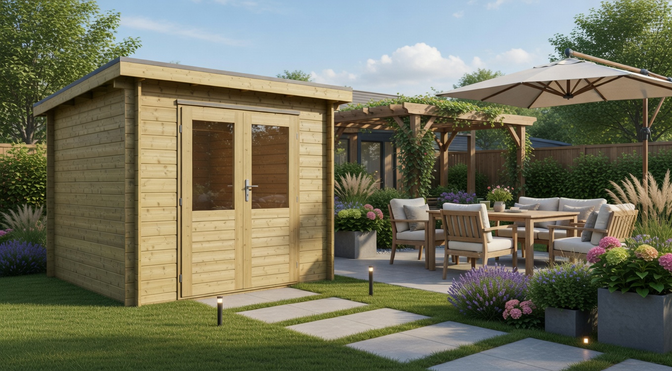 Das Diana 250x250cm Gartenhaus ist ein praktisches quadratisches Holz-Gartenhaus, das eine gute Balance zwischen kompakten Außenmaßen und nutzbarer Innenfläche bietet. Mit einer Größe von 250 x 250 cm eignet sich dieses Modell ideal zur Lagerung von Werkzeugen, Fahrrädern oder Saisonartikeln. Die 28 mm starken Holzwände sorgen für Stabilität und eine solide Ausstrahlung. Das Pultdach mit 3 Grad Dachneigung verleiht dem Modell eine moderne Form und gewährleistet einen zuverlässigen Wasserablauf. Das Diana 250x250cm wird unbehandelt geliefert und bietet damit eine gute Basis für eine individuelle Weiterbehandlung. Durch seine quadratische Form lässt sich dieses Gartenhaus besonders praktisch nutzen.
