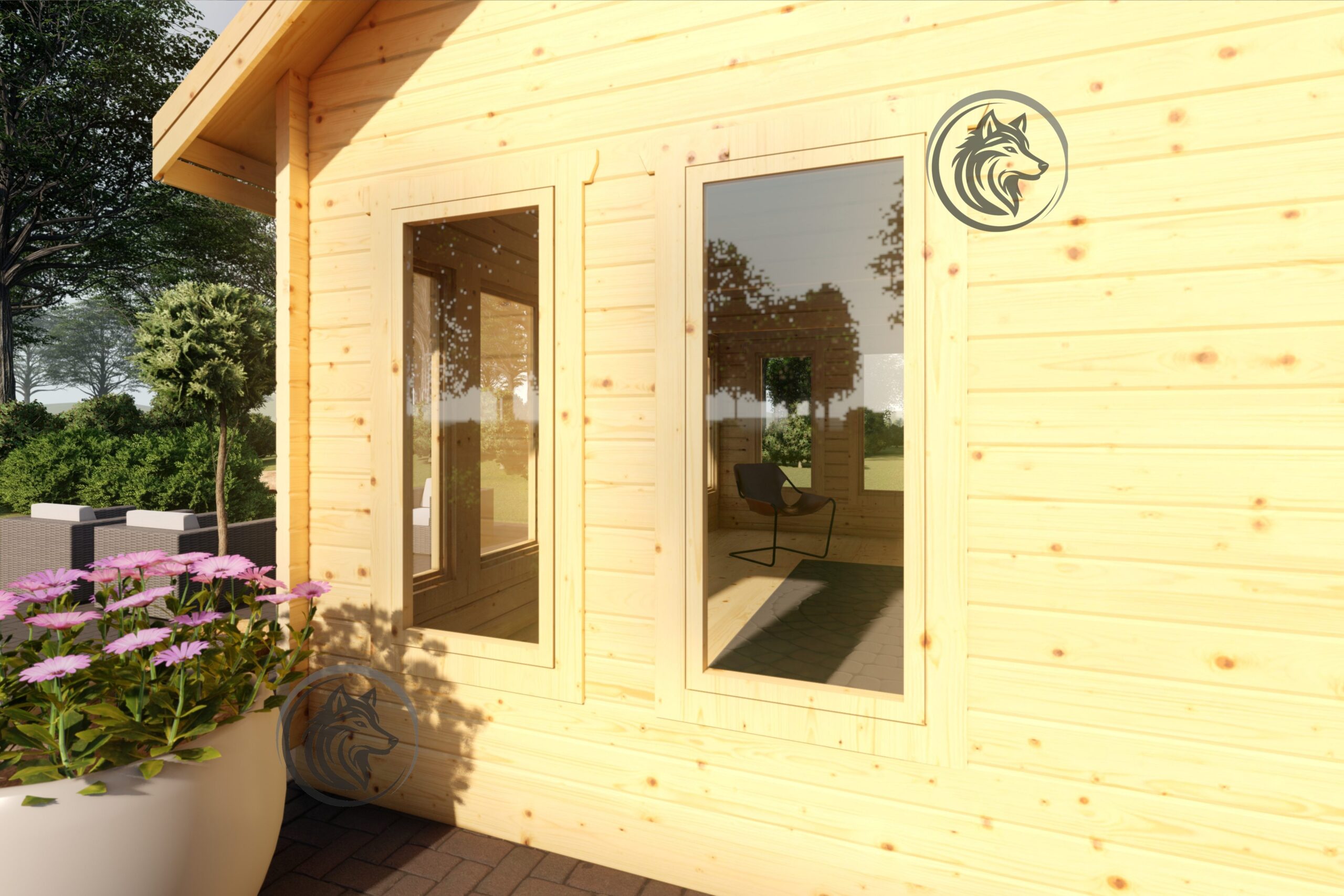 Das Gartenhaus Jasper 400×550 ist aus hochwertigem Holz gefertigt und verfügt über eine Wandstärke von 44 mm. Diese robuste Konstruktion gewährleistet eine ausgezeichnete Isolierung und macht das Gartenhaus zu einer langlebigen Investition. Das Holz ist wetterfest behandelt, sodass es den unterschiedlichsten Witterungsbedingungen standhält und über viele Jahre hinweg schön bleibt.