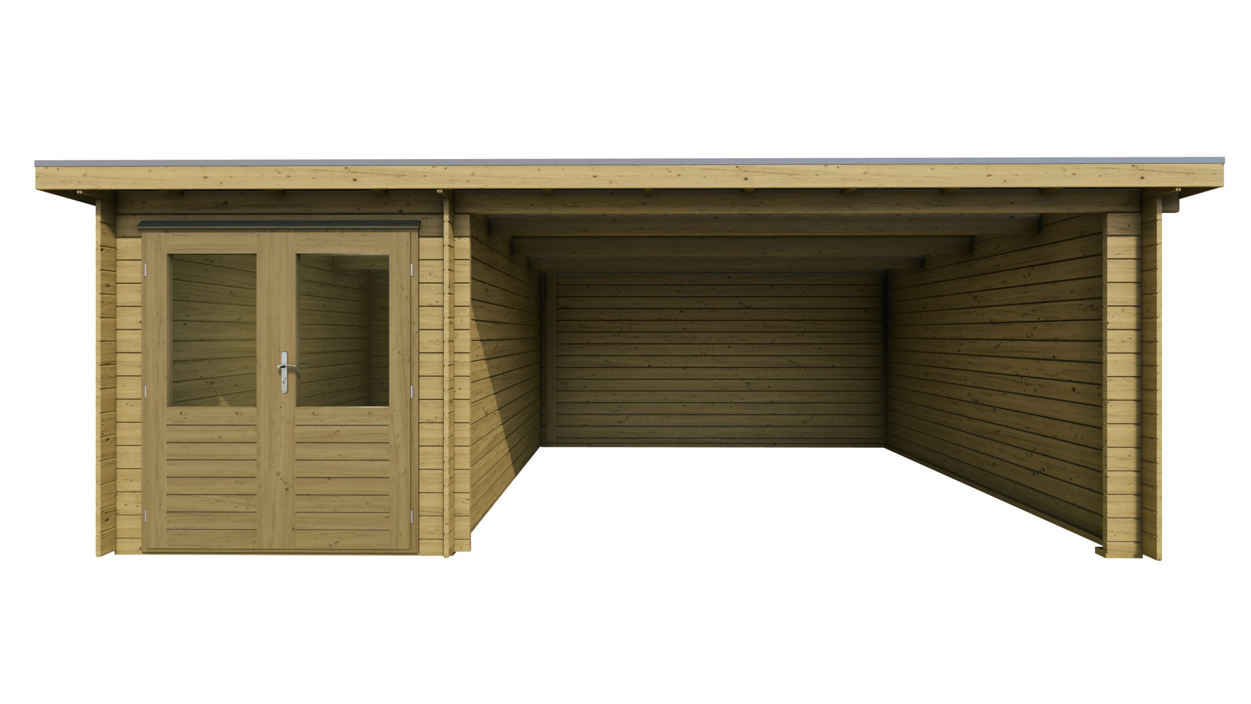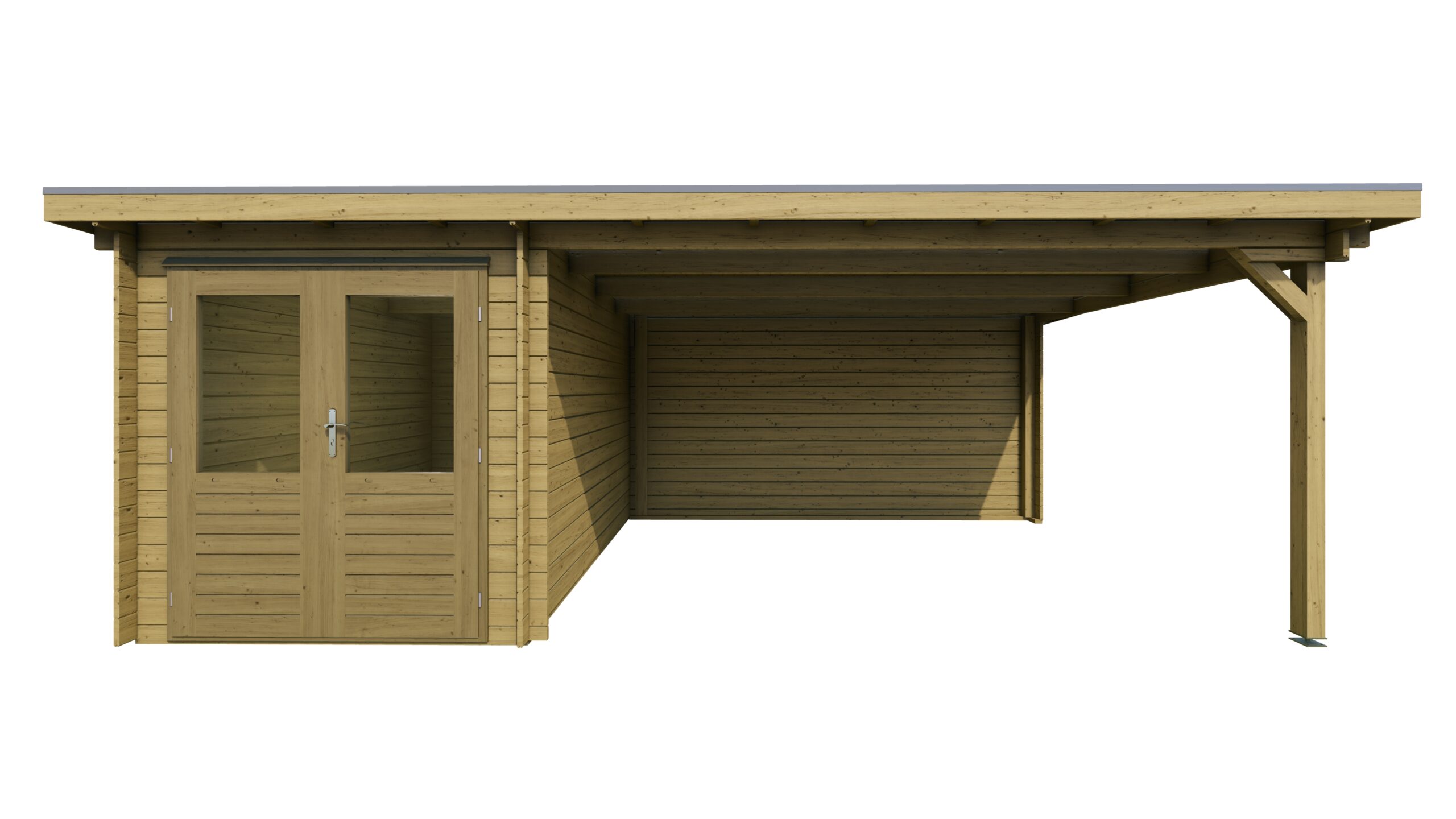 Das Pultdach mit 3 Grad Dachneigung verleiht dem Gartenhaus eine klare, zeitgemäße Linienführung. Gleichzeitig gewährleistet diese Neigung einen zuverlässigen Wasserablauf – für zusätzlichen Schutz vor Feuchtigkeit und Witterungseinflüssen. Im Lieferumfang sind bereits Dachblende und Fundamentbalken enthalten.