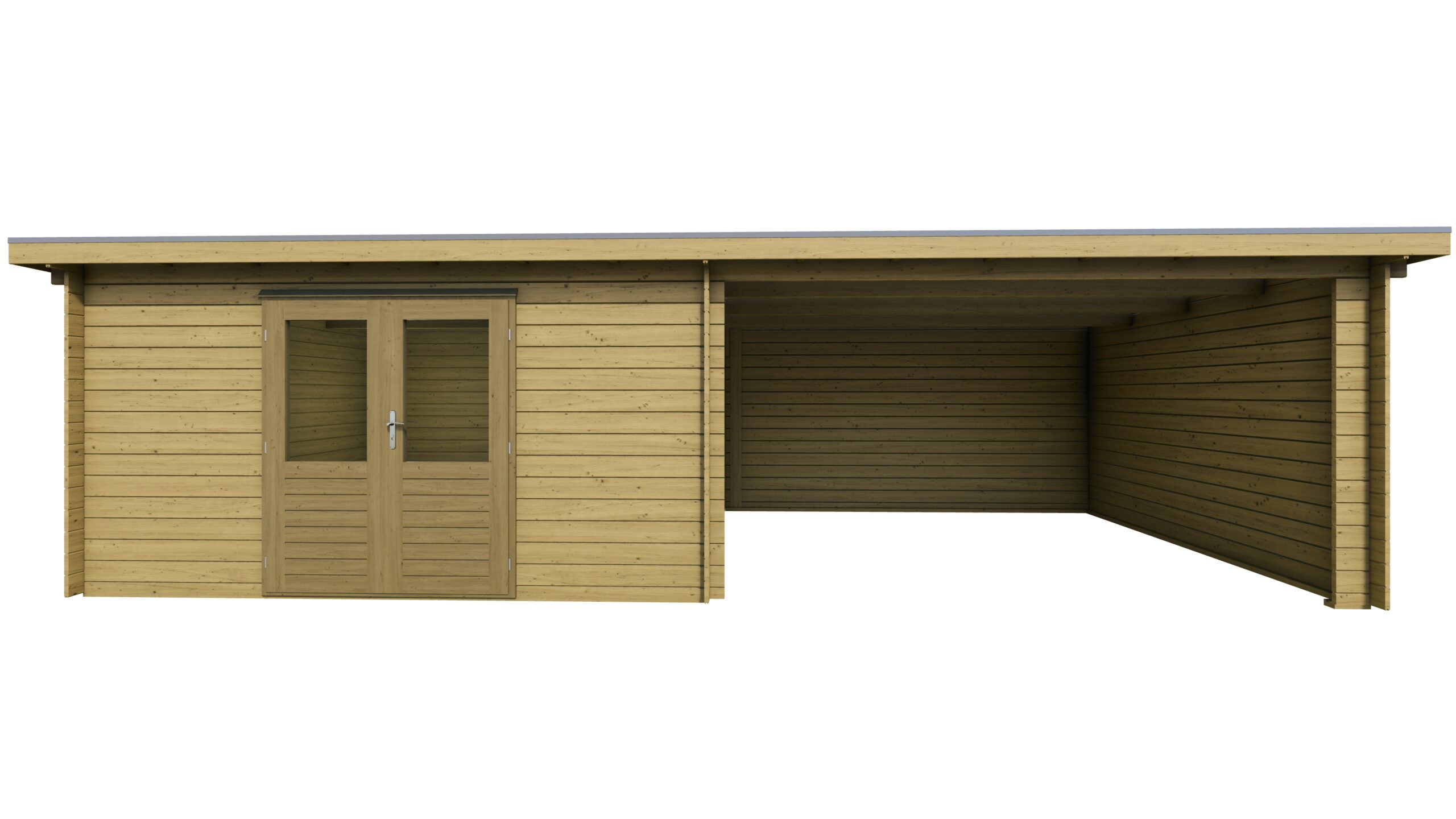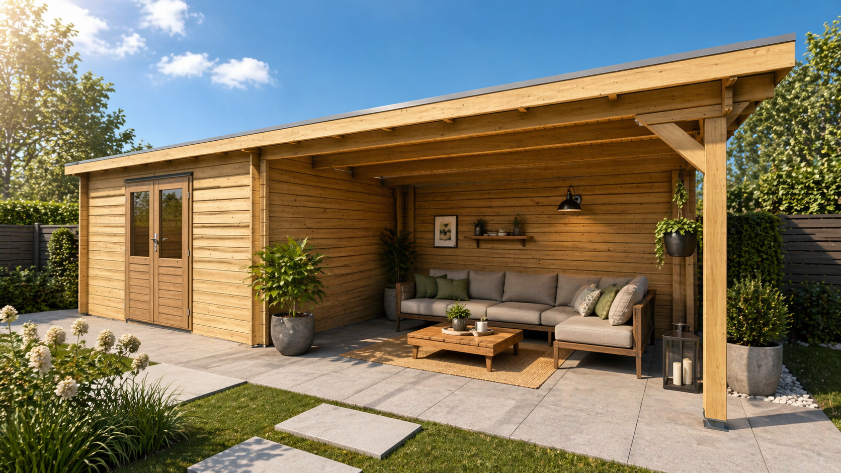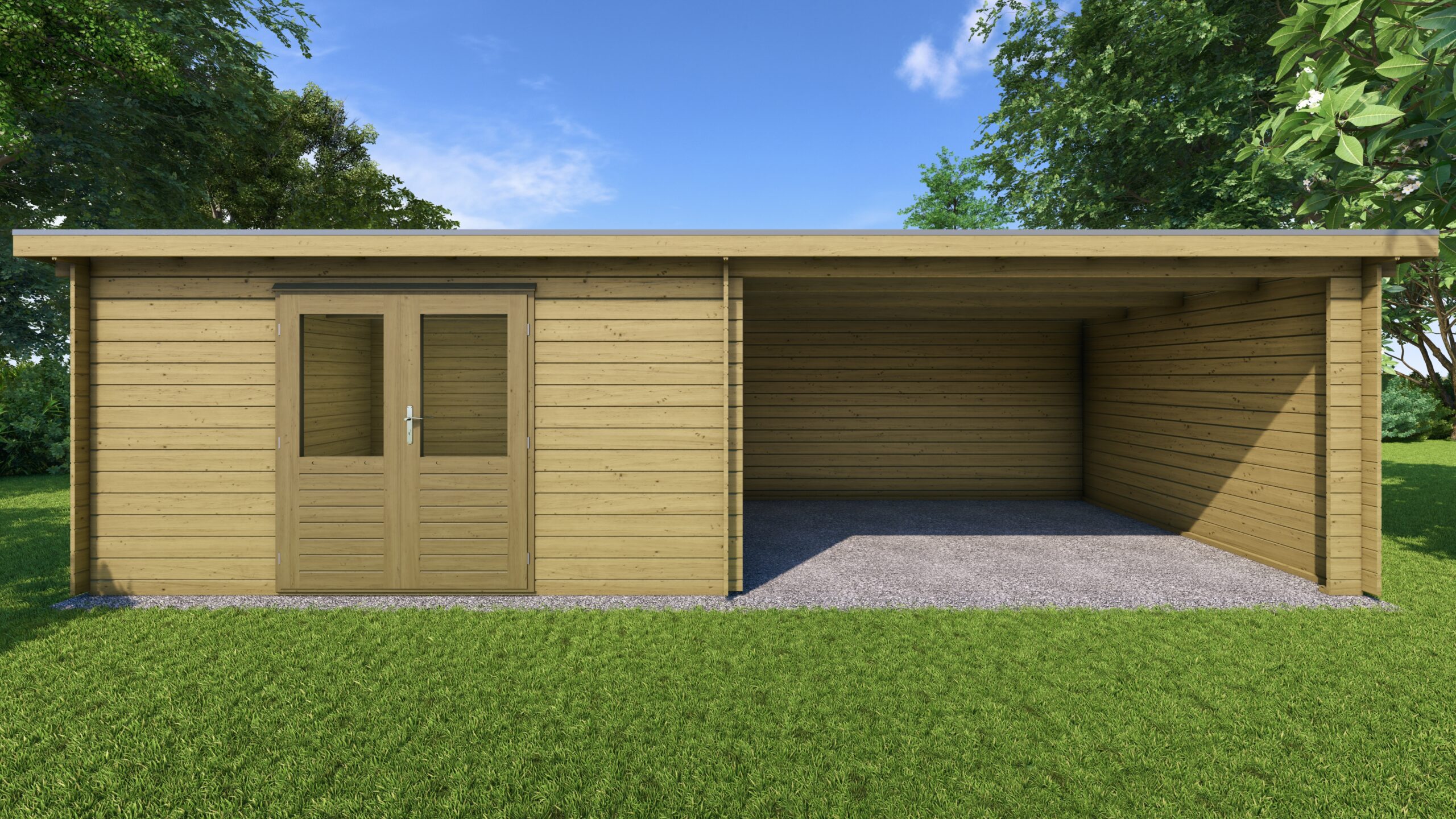 Das Pultdach mit 3 Grad Dachneigung verleiht dem Gartenhaus eine klare, zeitgemäße Linienführung. Gleichzeitig gewährleistet diese Neigung einen zuverlässigen Wasserablauf – für zusätzlichen Schutz vor Feuchtigkeit und Witterungseinflüssen. Im Lieferumfang sind bereits Dachblende und Fundamentbalken enthalten.