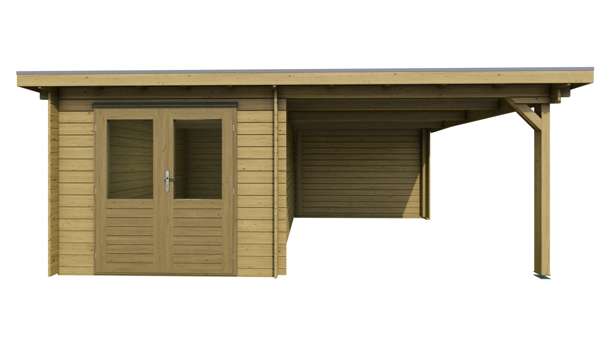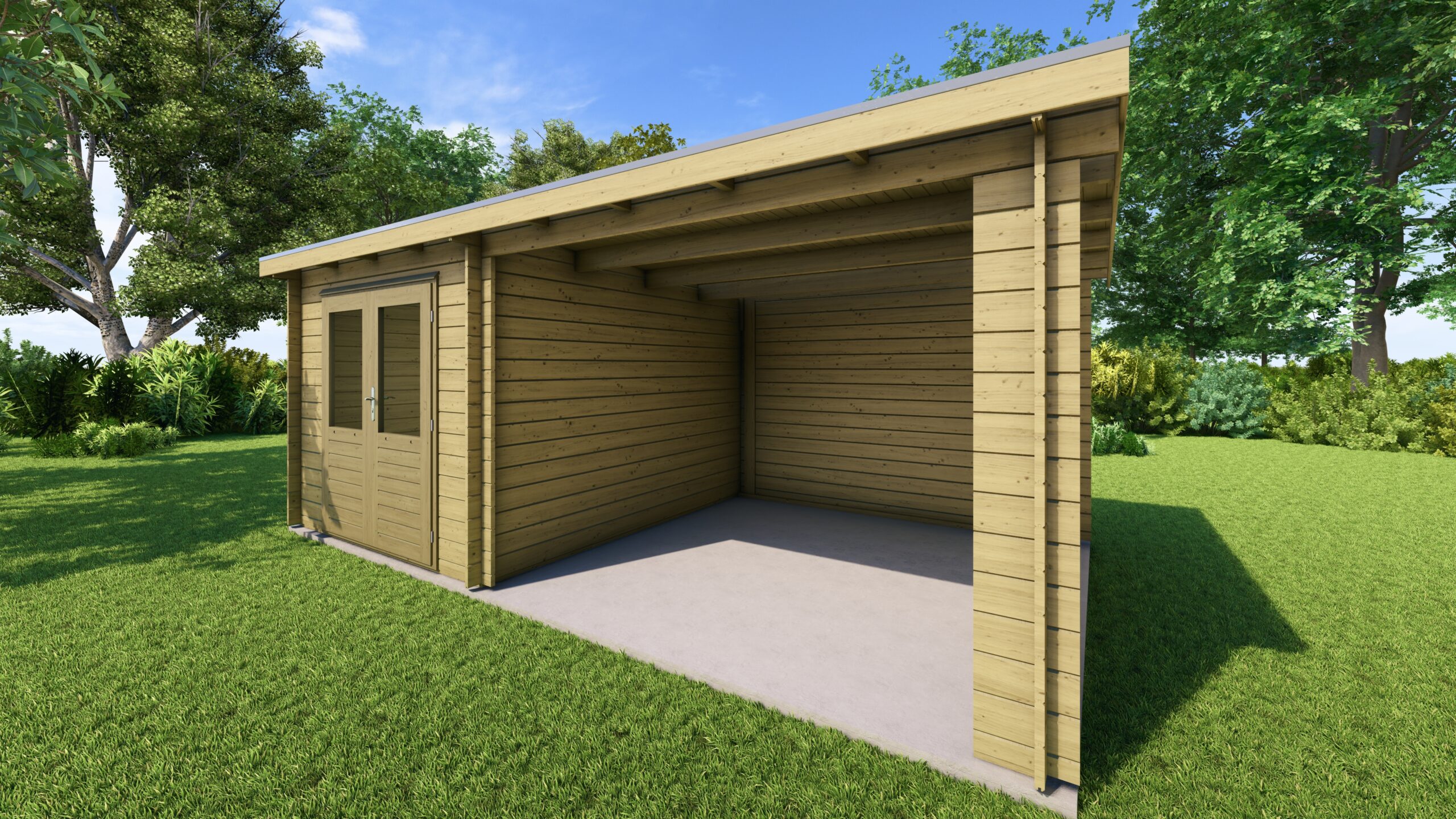 Das Pultdach mit 3 Grad Dachneigung verleiht dem Gartenhaus eine klare, zeitgemäße Linienführung. Gleichzeitig gewährleistet diese Neigung einen zuverlässigen Wasserablauf – für zusätzlichen Schutz vor Feuchtigkeit und Witterungseinflüssen. Im Lieferumfang sind bereits Dachblende und Fundamentbalken enthalten.