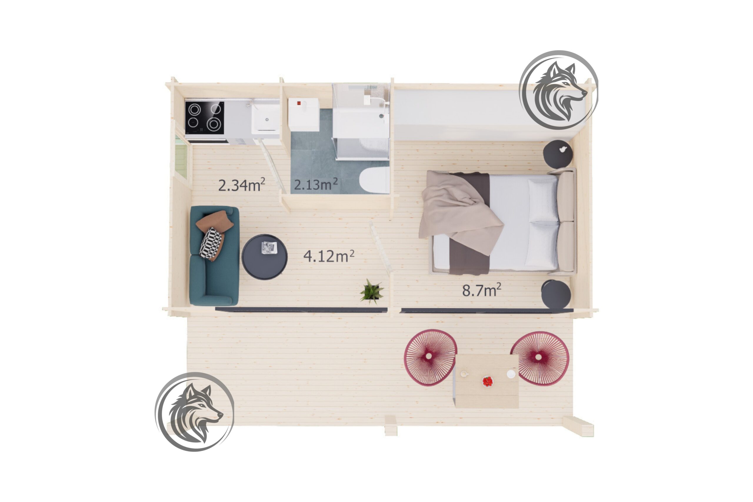 - Pultdach: Das moderne Pultdach verleiht dem Gartenhaus nicht nur einen zeitlosen Look, sondern sorgt auch für einen effizienten Regenwasserablauf.