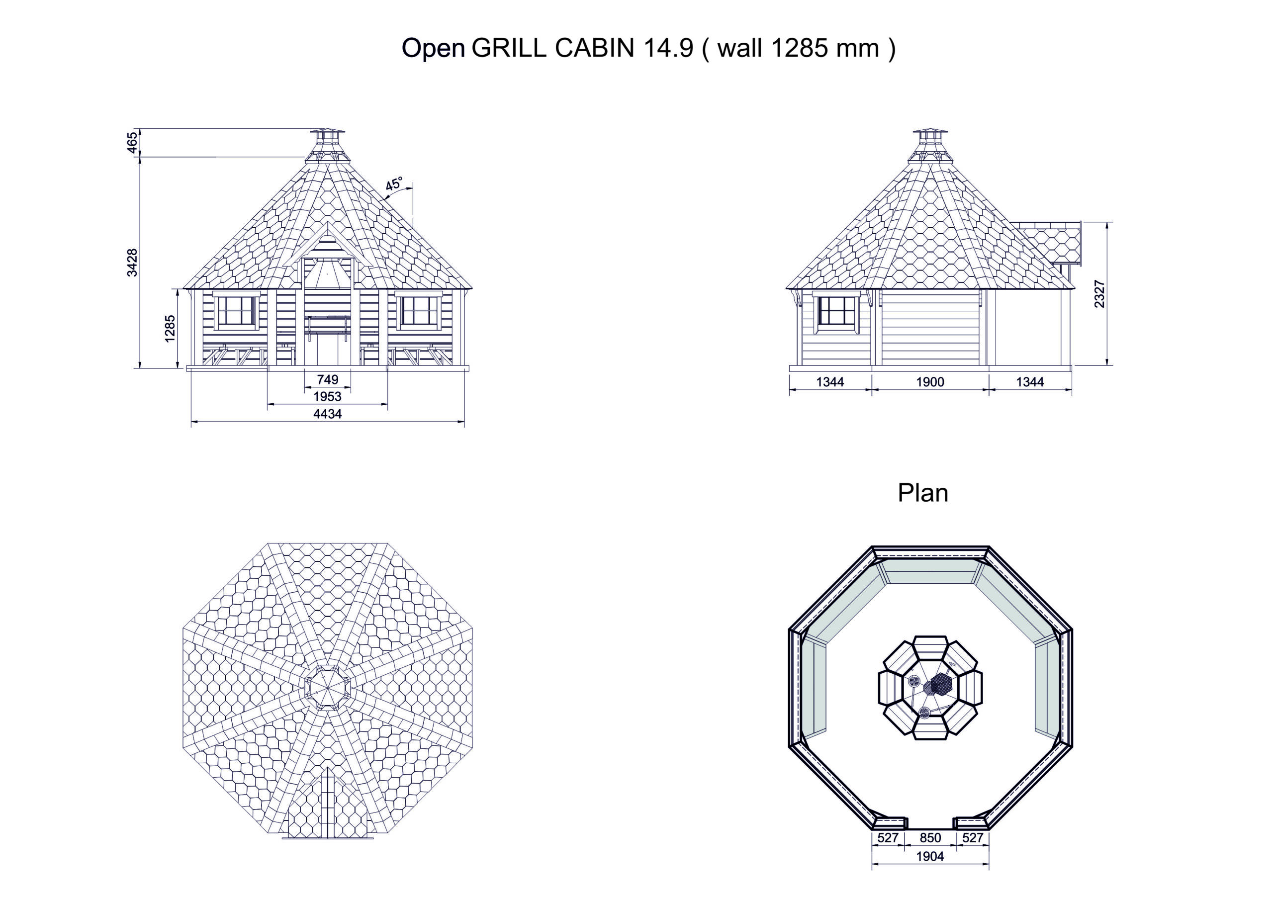 Die Grillhütte wird als kompletter Bausatz geliefert und kann von zwei Personen in nur 7 Stunden zusammengebaut werden. Alle notwendigen Komponenten sind enthalten: