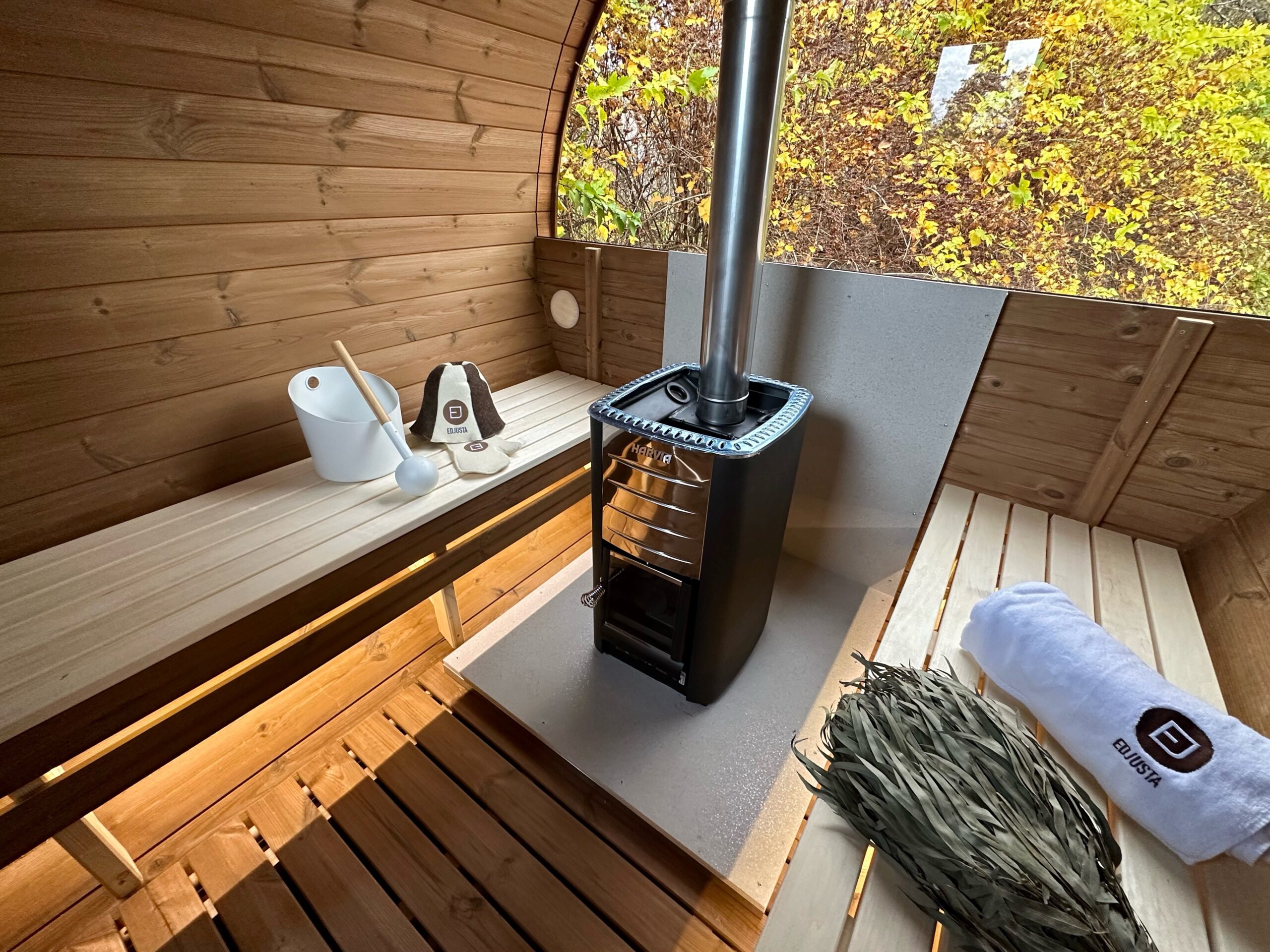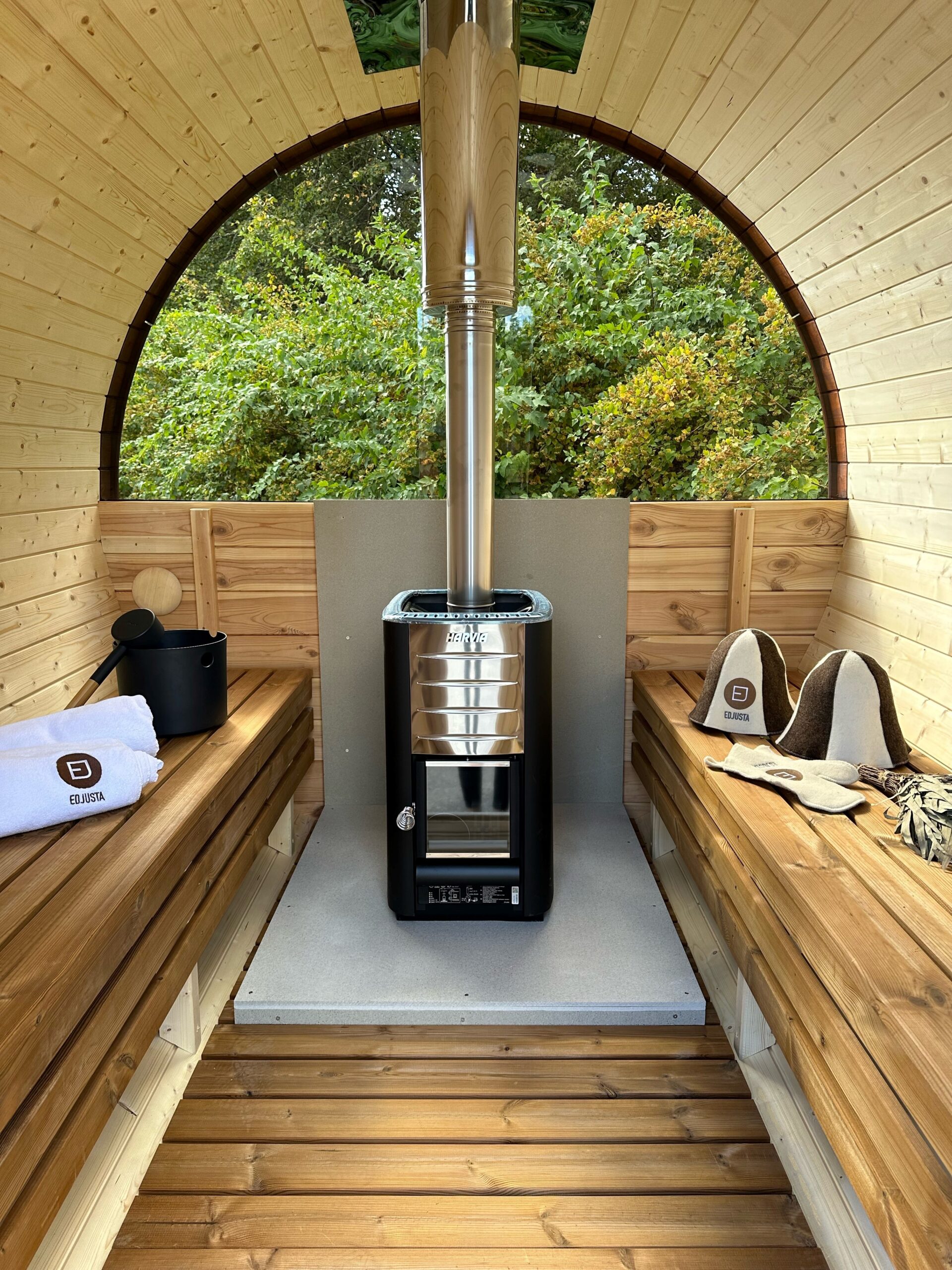 Die Holta-Fasssauna überzeugt mit einer durchdachten Standardausstattung: