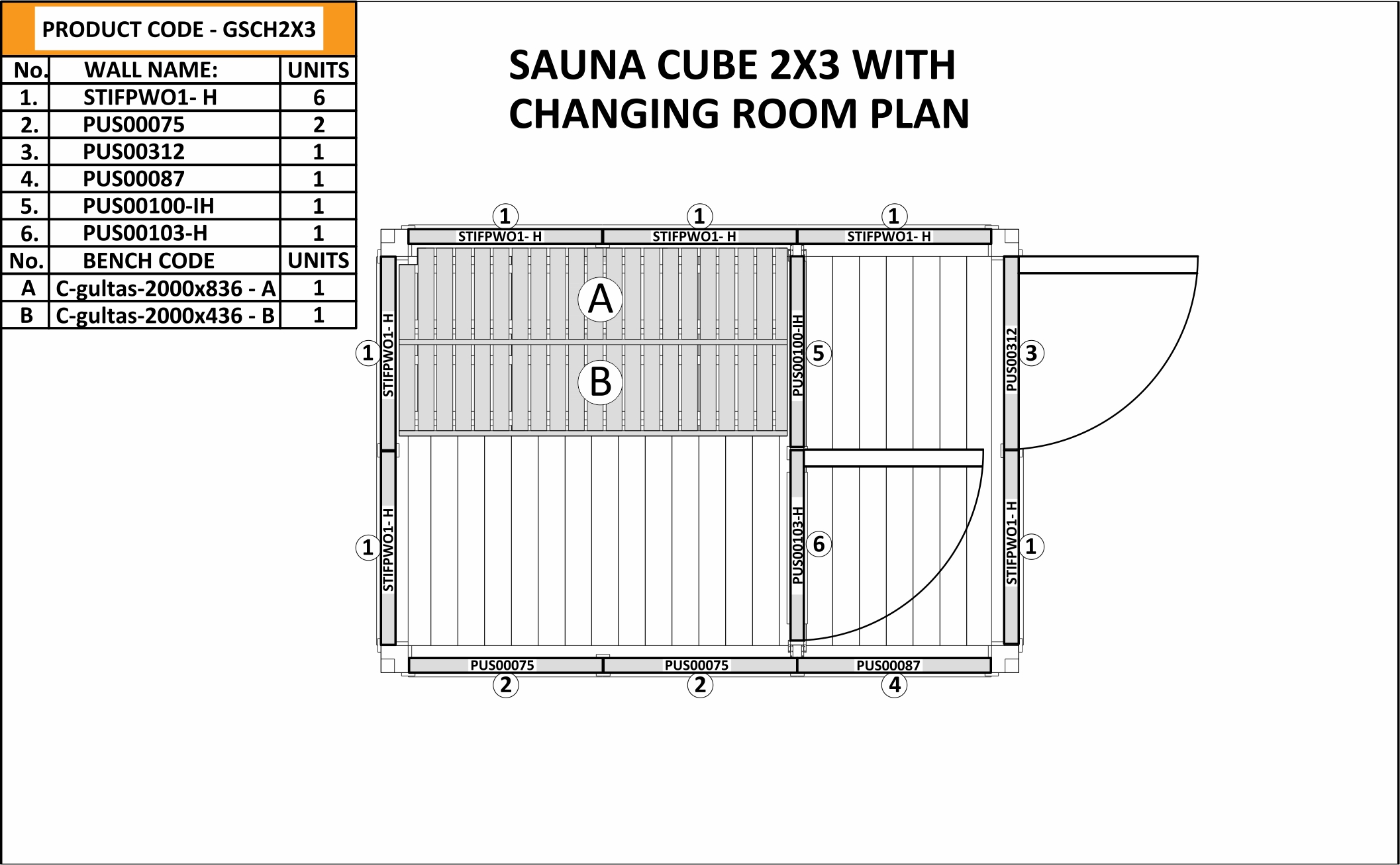 Das Saunahaus OLIS 300 wird als vollständiger Bausatz geliefert: