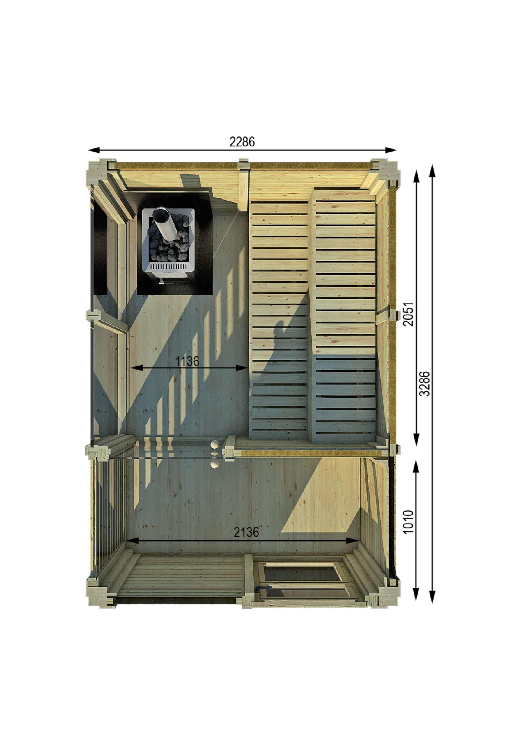 - Äußere Dimension 2286 x 3286 mm