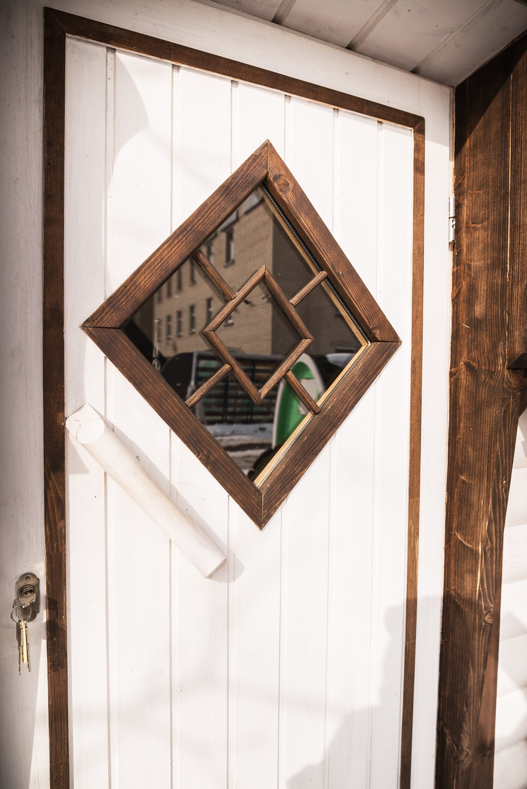 - Tür mit Schloss und quadratischem Fenster